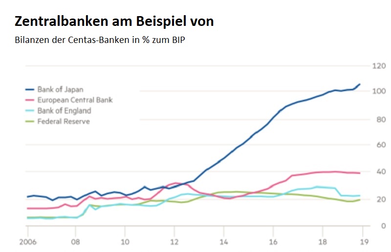 • Erst in den ersten drei Monaten des Jahres 2020 druckte die Bank of Japan neues Geld, das beeindruckende 10% des japanischen BIP entspricht.