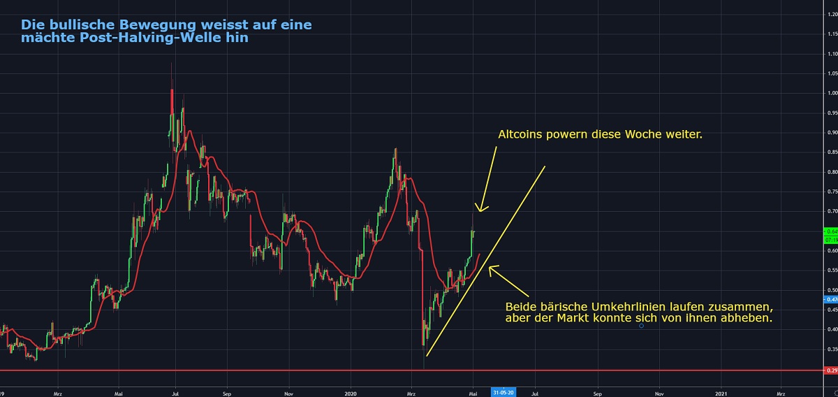 Es ist großartig zu sehen, wie sich die Mai-Halving von Bitcoin so positiv entwickelt. Es ist großartig zu sehen, dass sich ein solch bullisches Momentum in das Mai-Halving von Bitcoin einschleicht. Das verstärkt noch die wachsende Wahrscheinlichkeit, dass sich die Krypto-Anlagen auf einen kräftigen Anstieg nach dem Halving vorbereiten.
